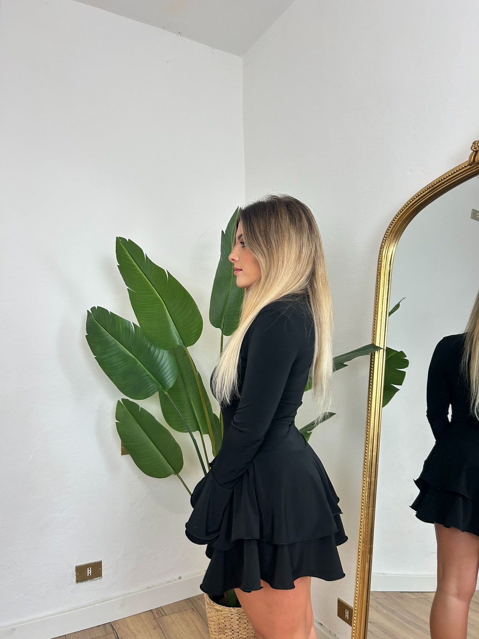 Abito corto a maniche lunghe con pantaloncini incorporato