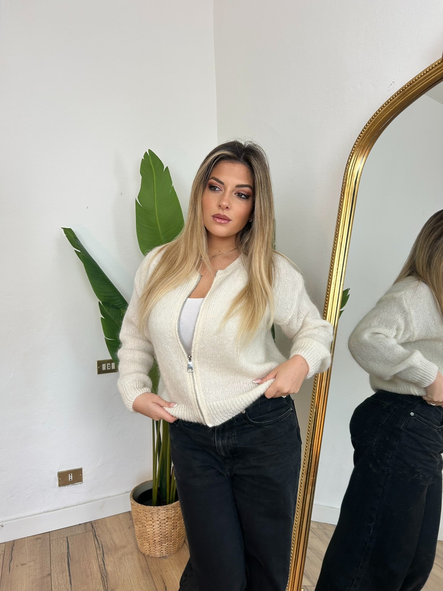 Maglione Mohair zip bianco