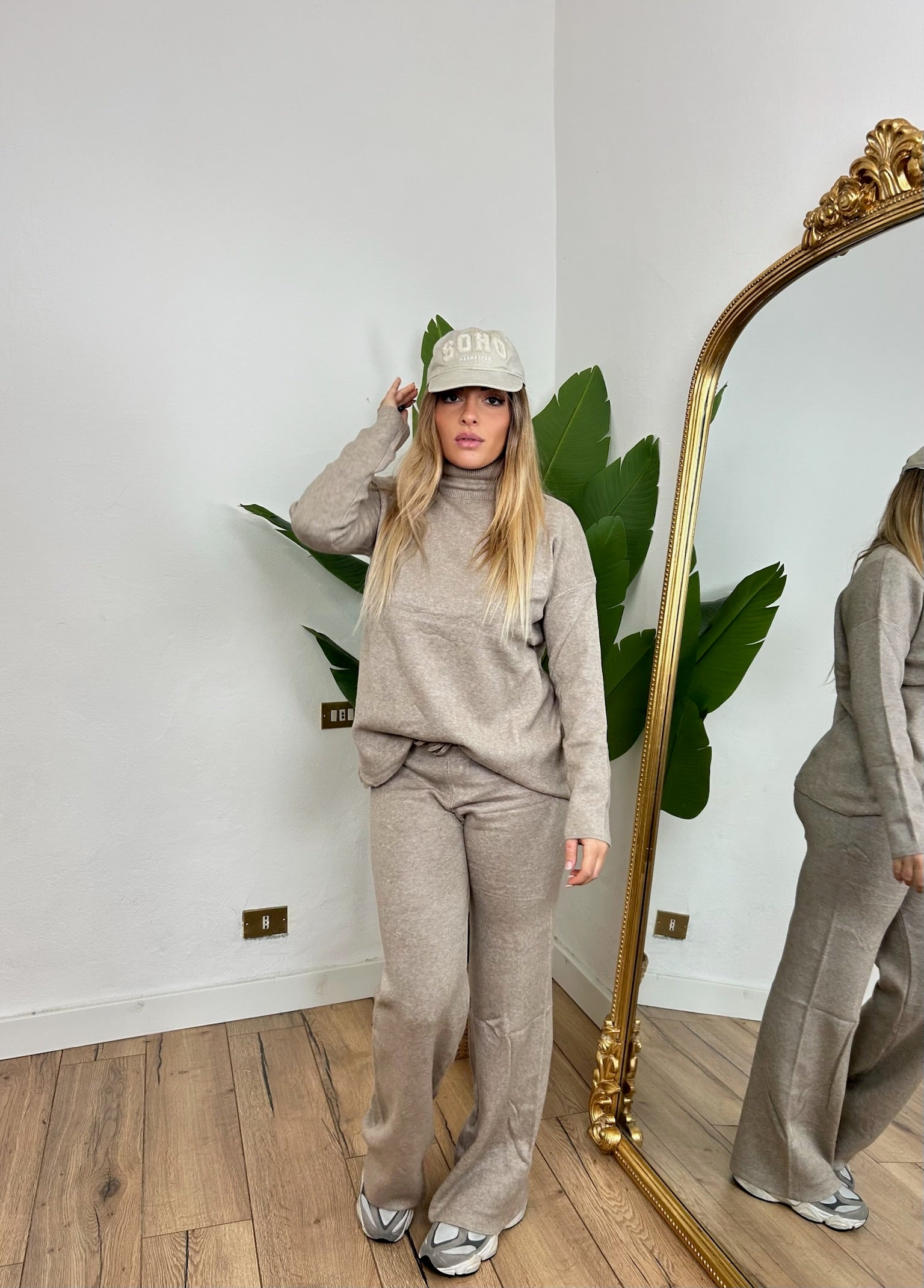 Coordinato in maglia super morbido con pantalone elasticizzato e maglione a collo alto