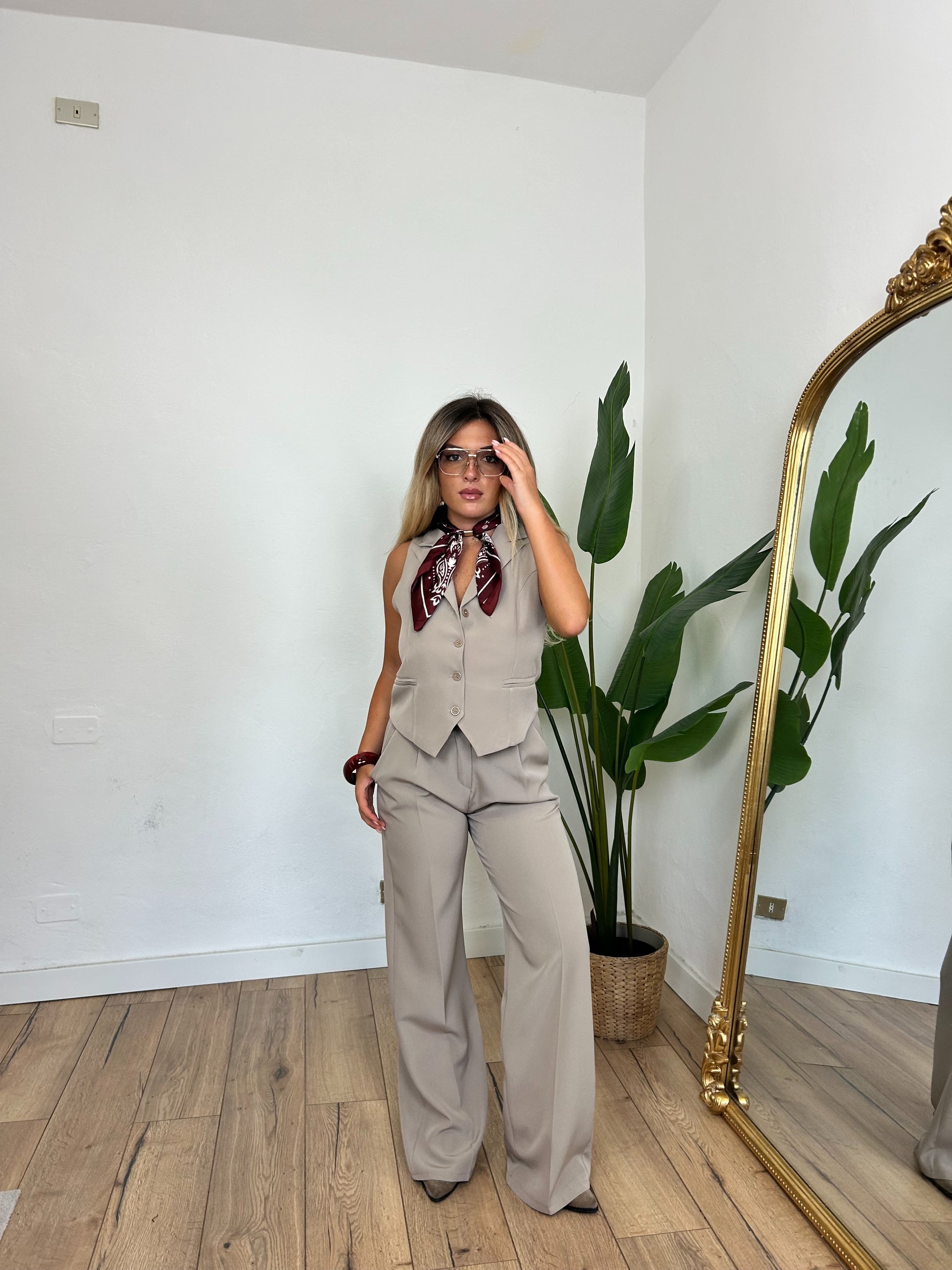 Coordinato con pantalone morbido elegante elasticizzato e gilet