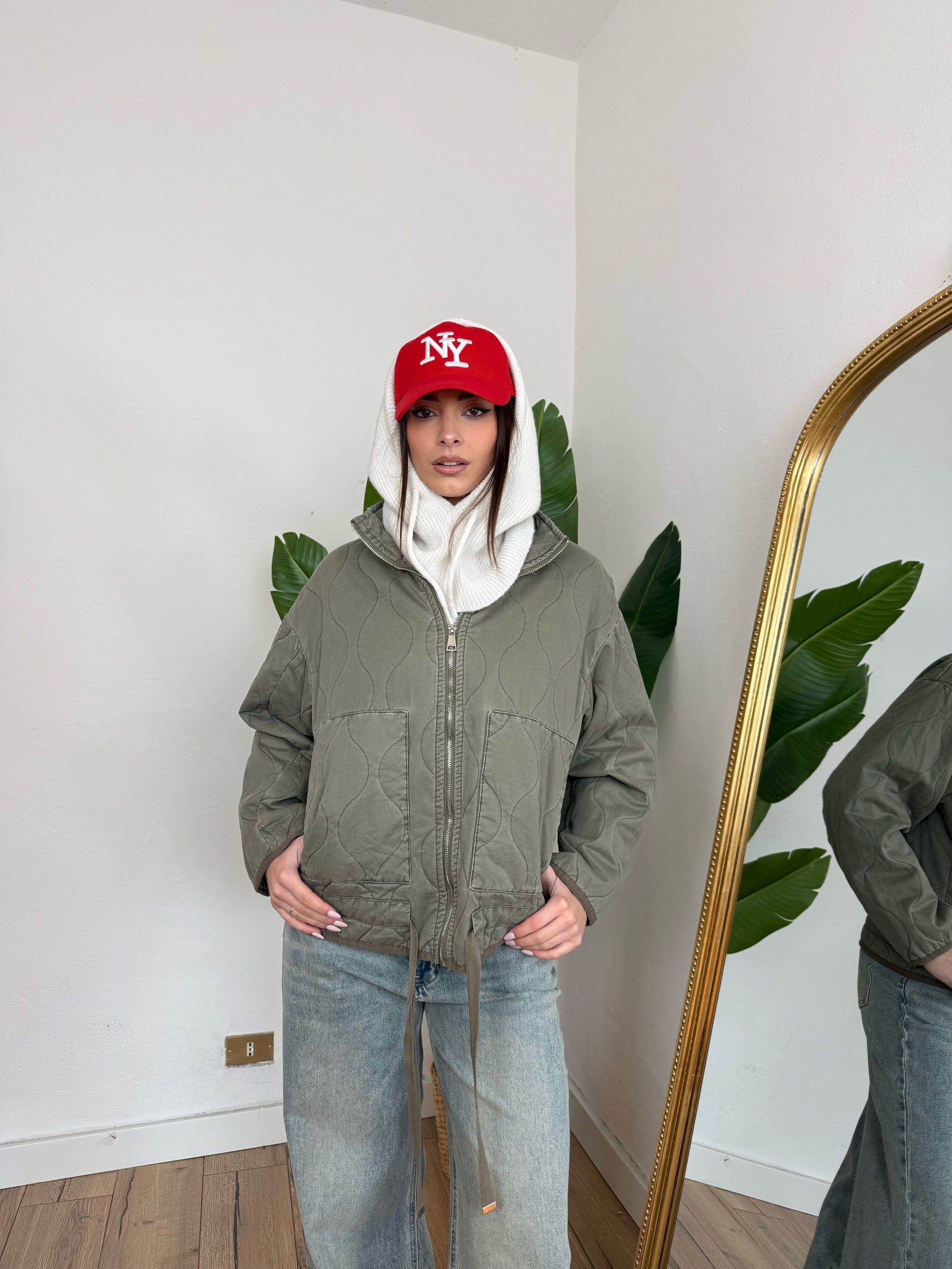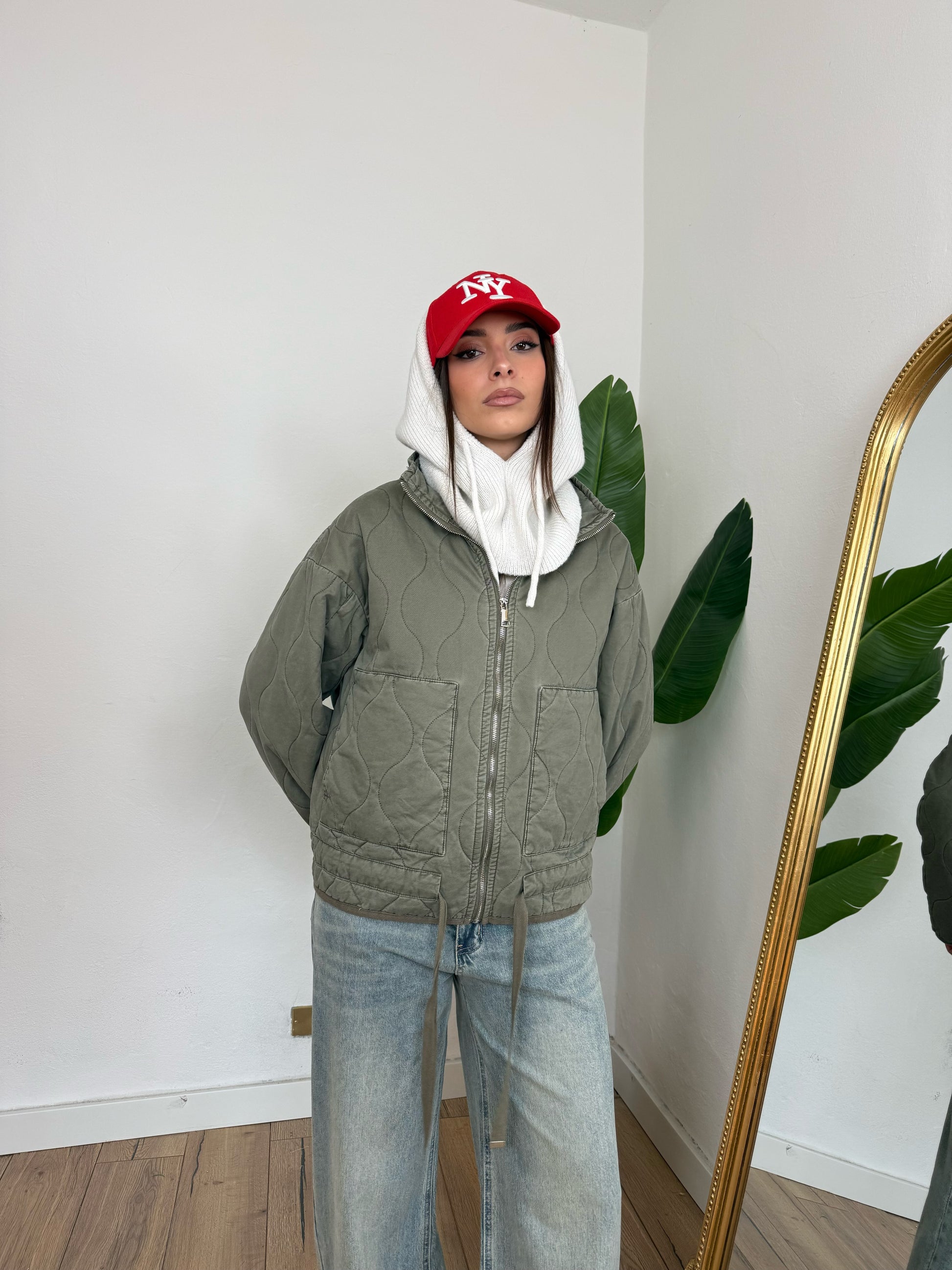 Giacca trapuntata con zip frontale.