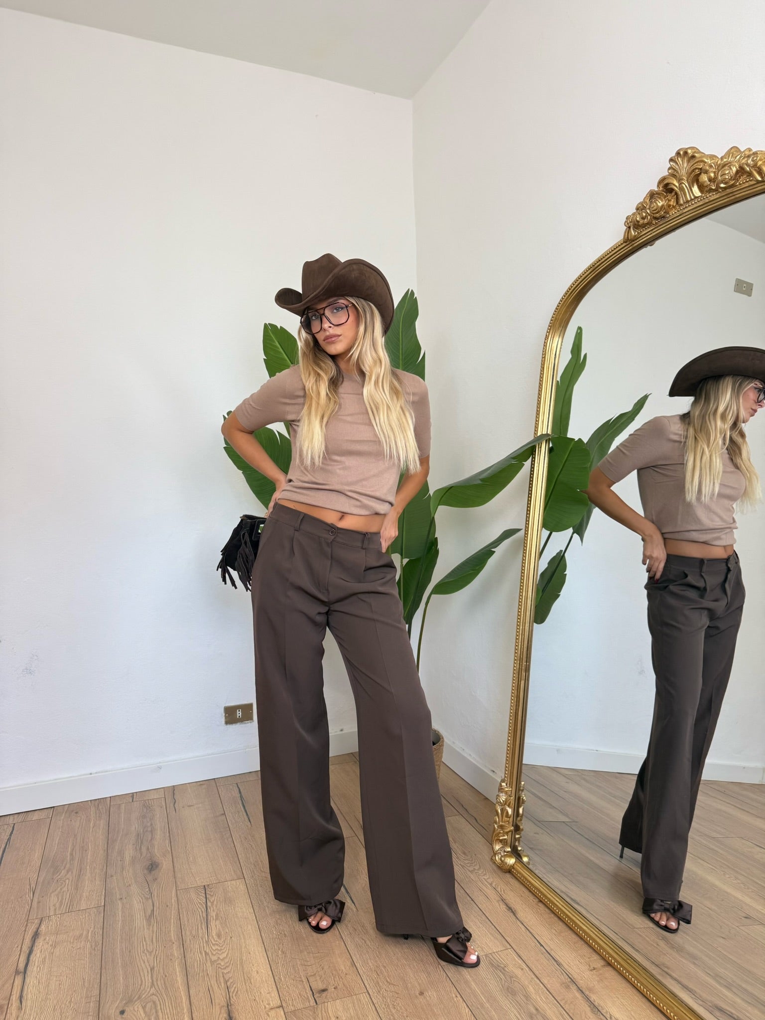 Pantaloni lunghi marroni a palazzo taglia unica.