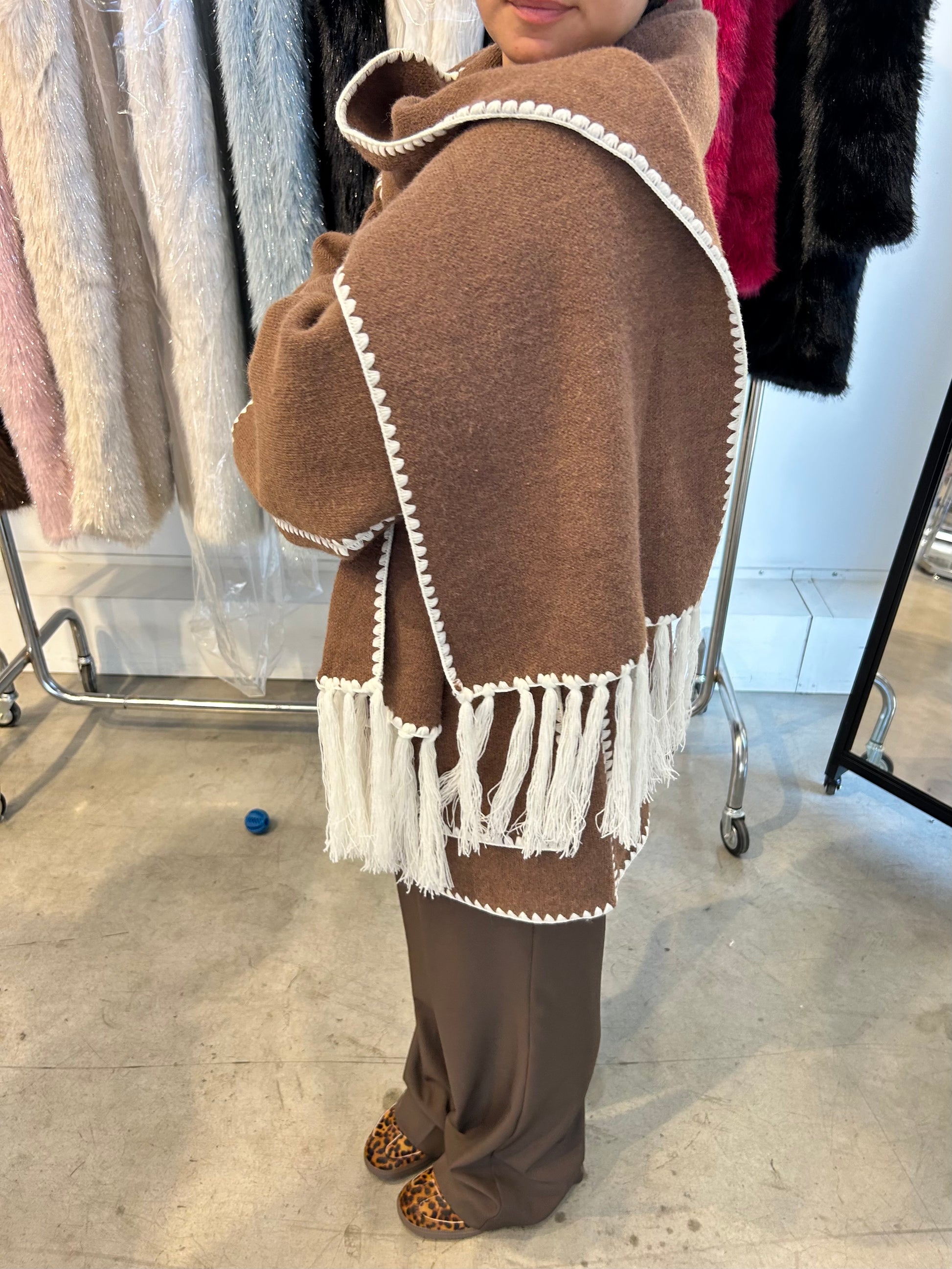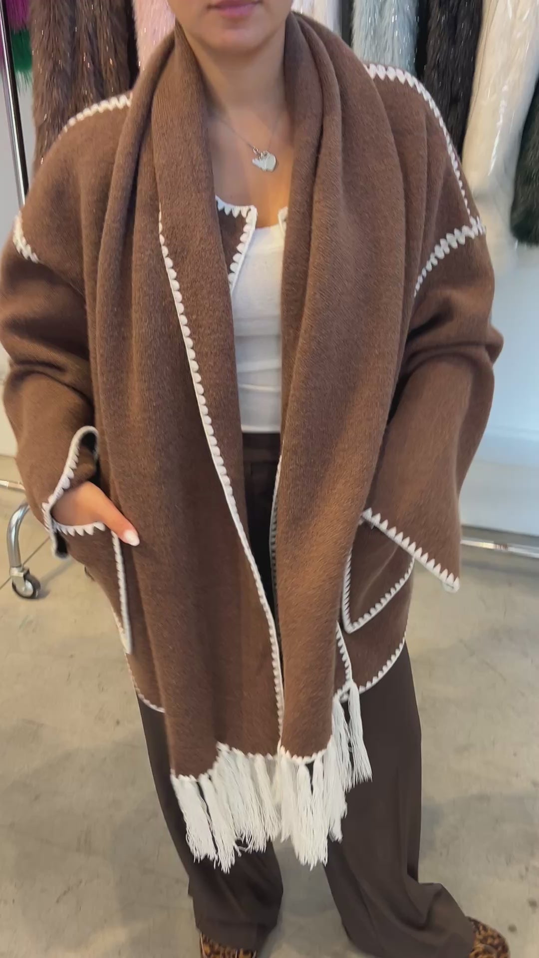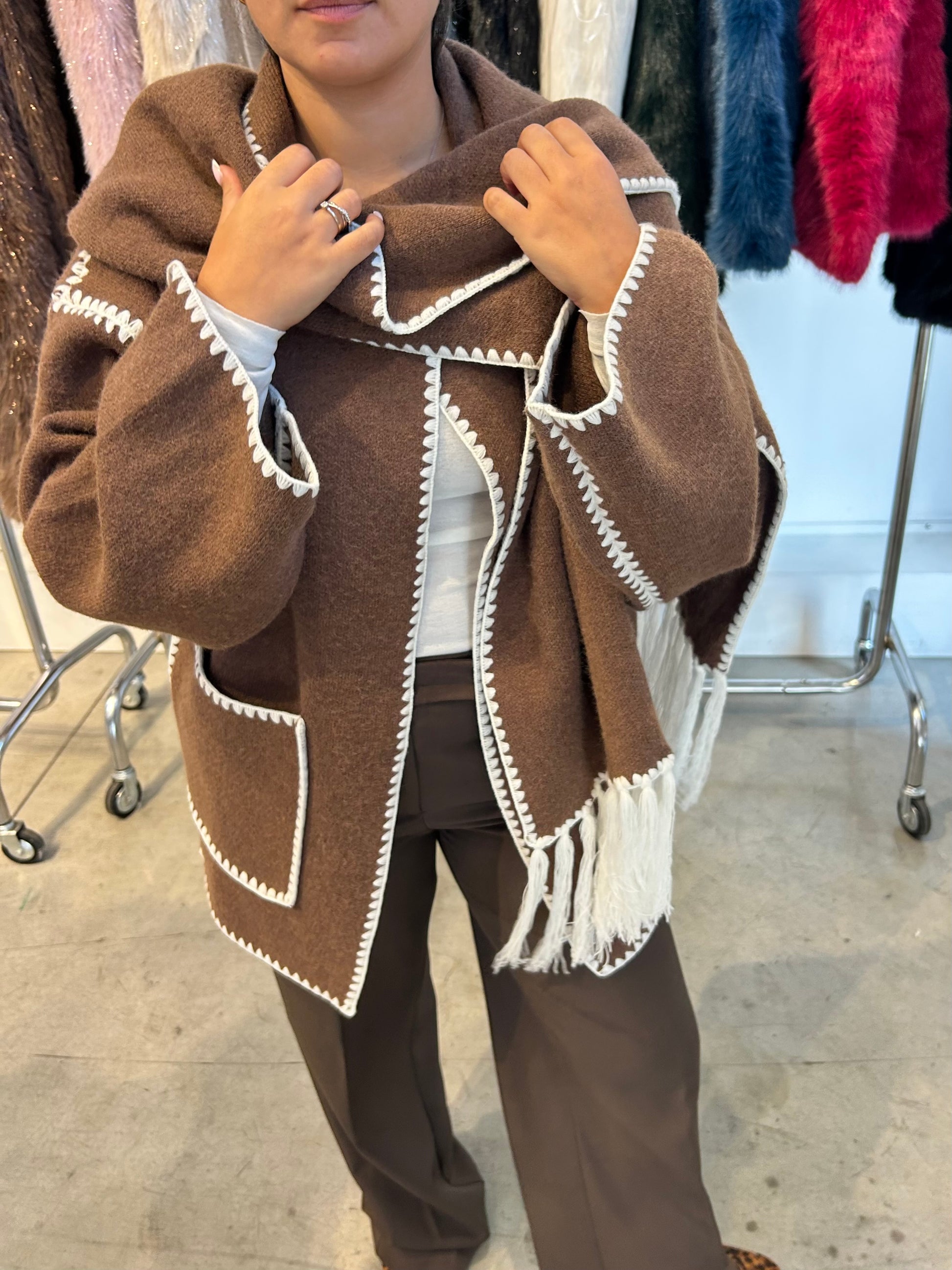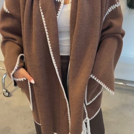 Giacca over con sciarpa inclusa.