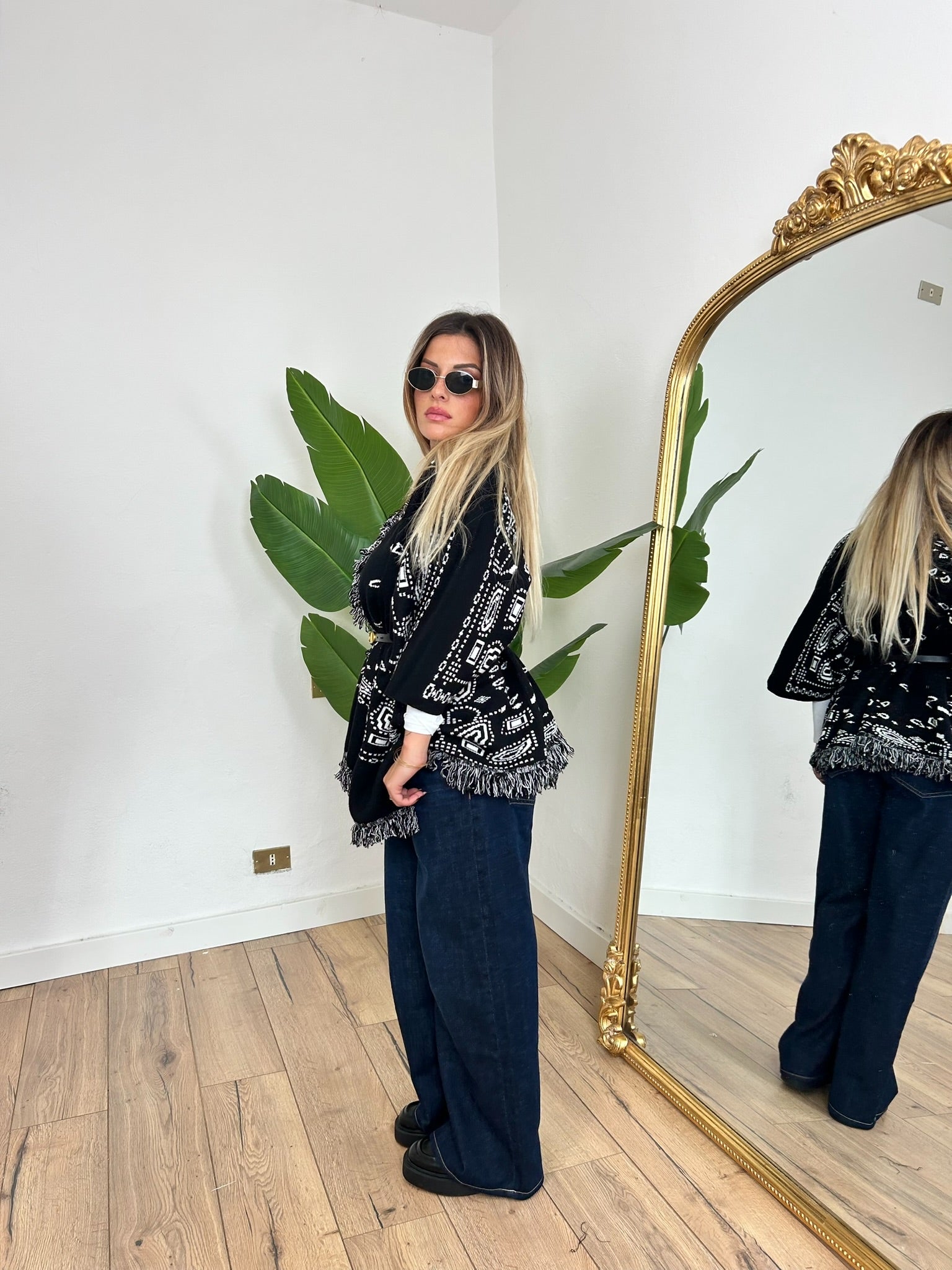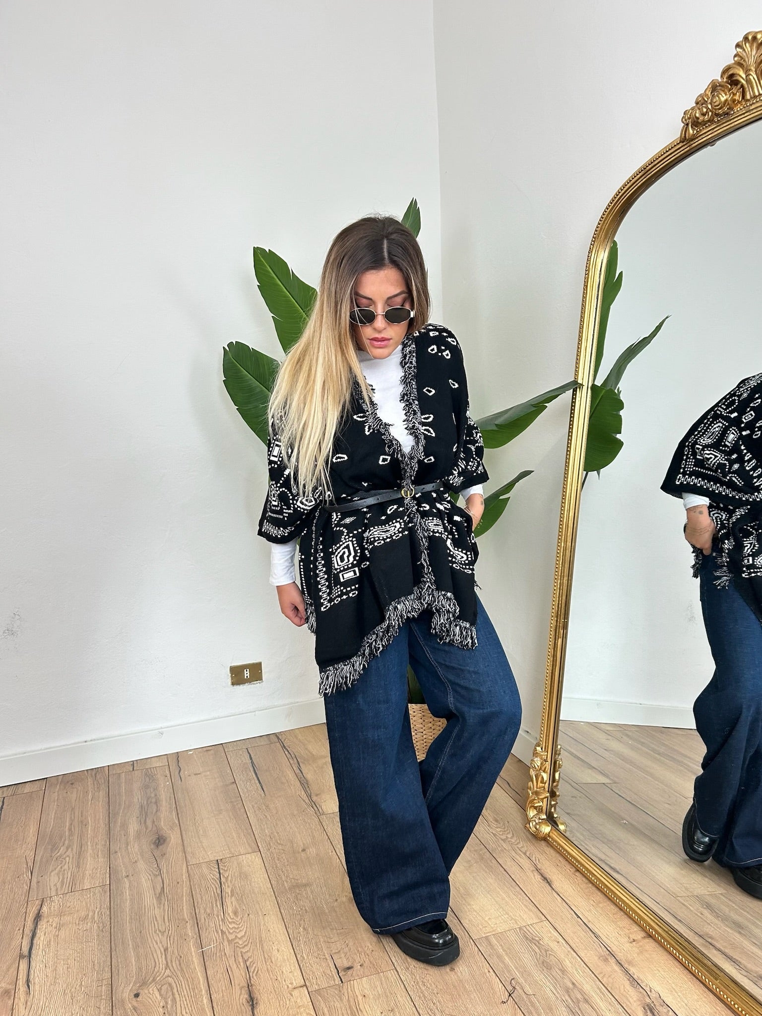 Poncho con buchi per le maniche e stampa bandiera (cintura non inclusa).