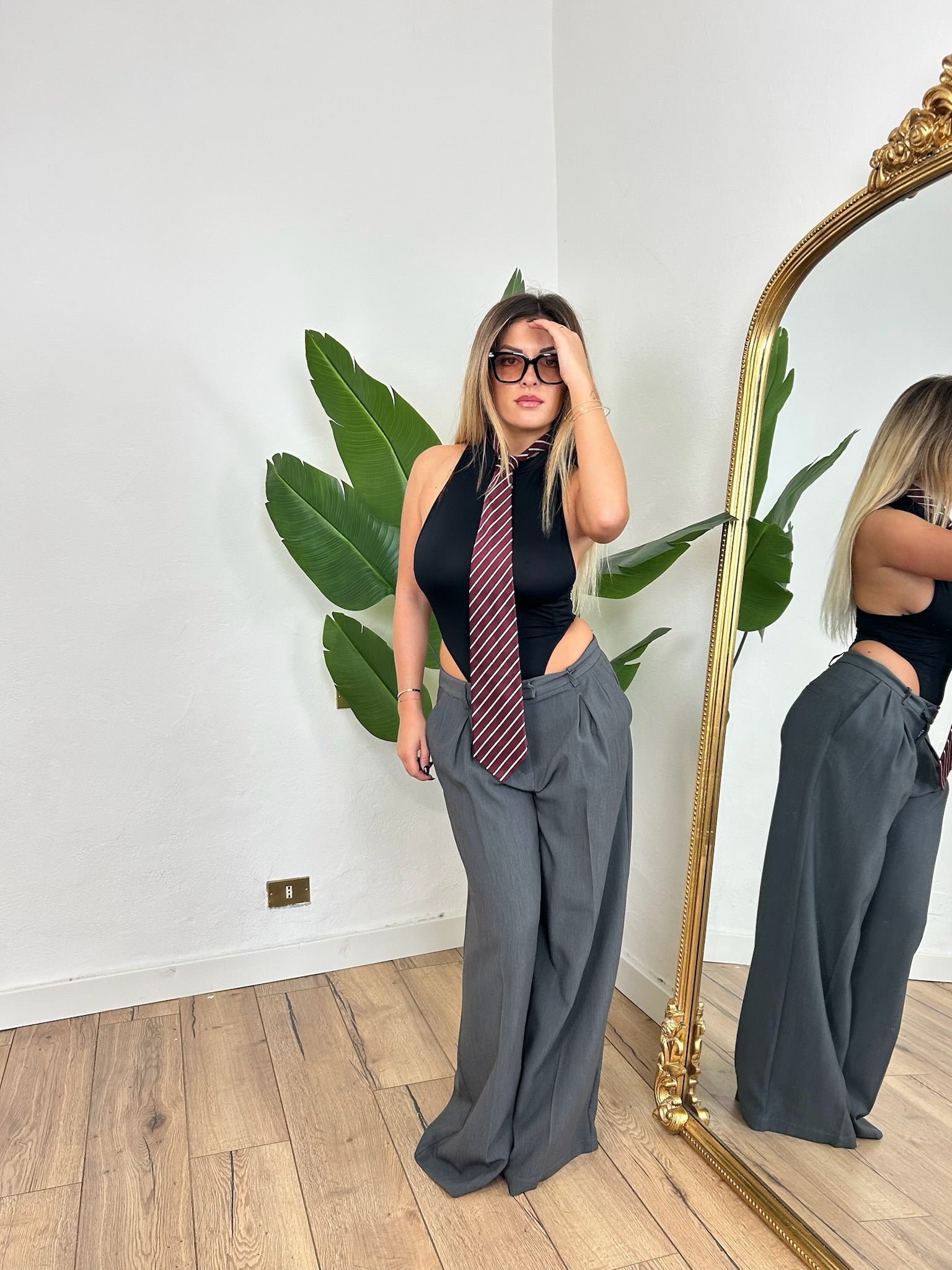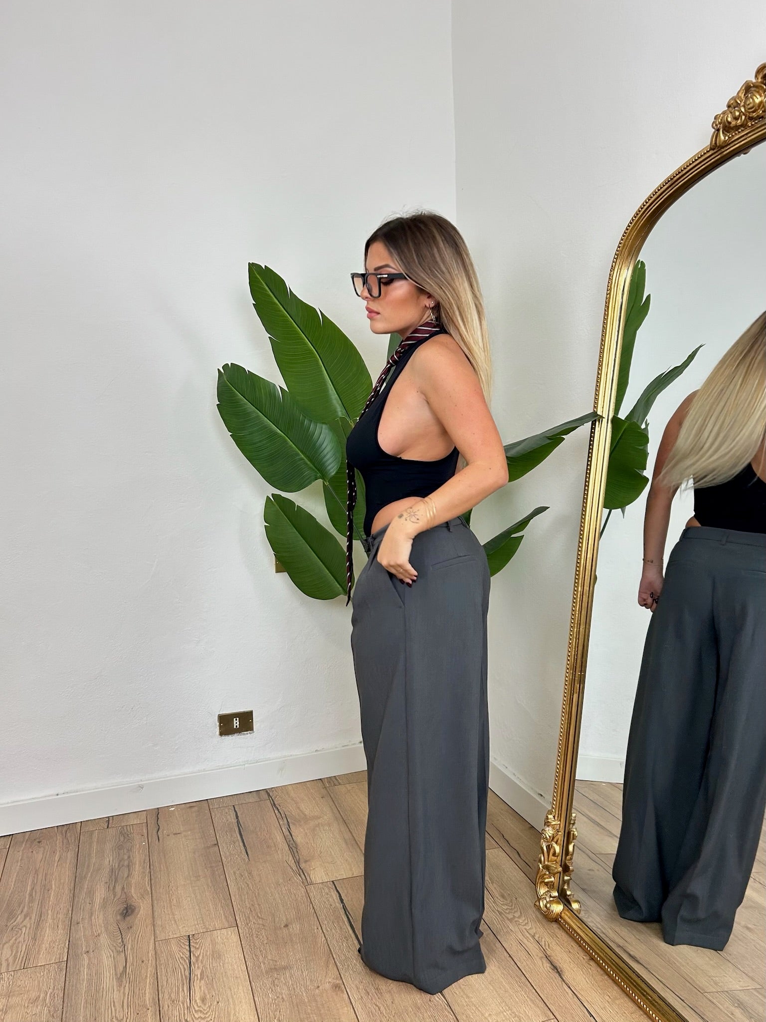Pantalone over elegante a vita bassa con chiusura con bottone e cerniera.
