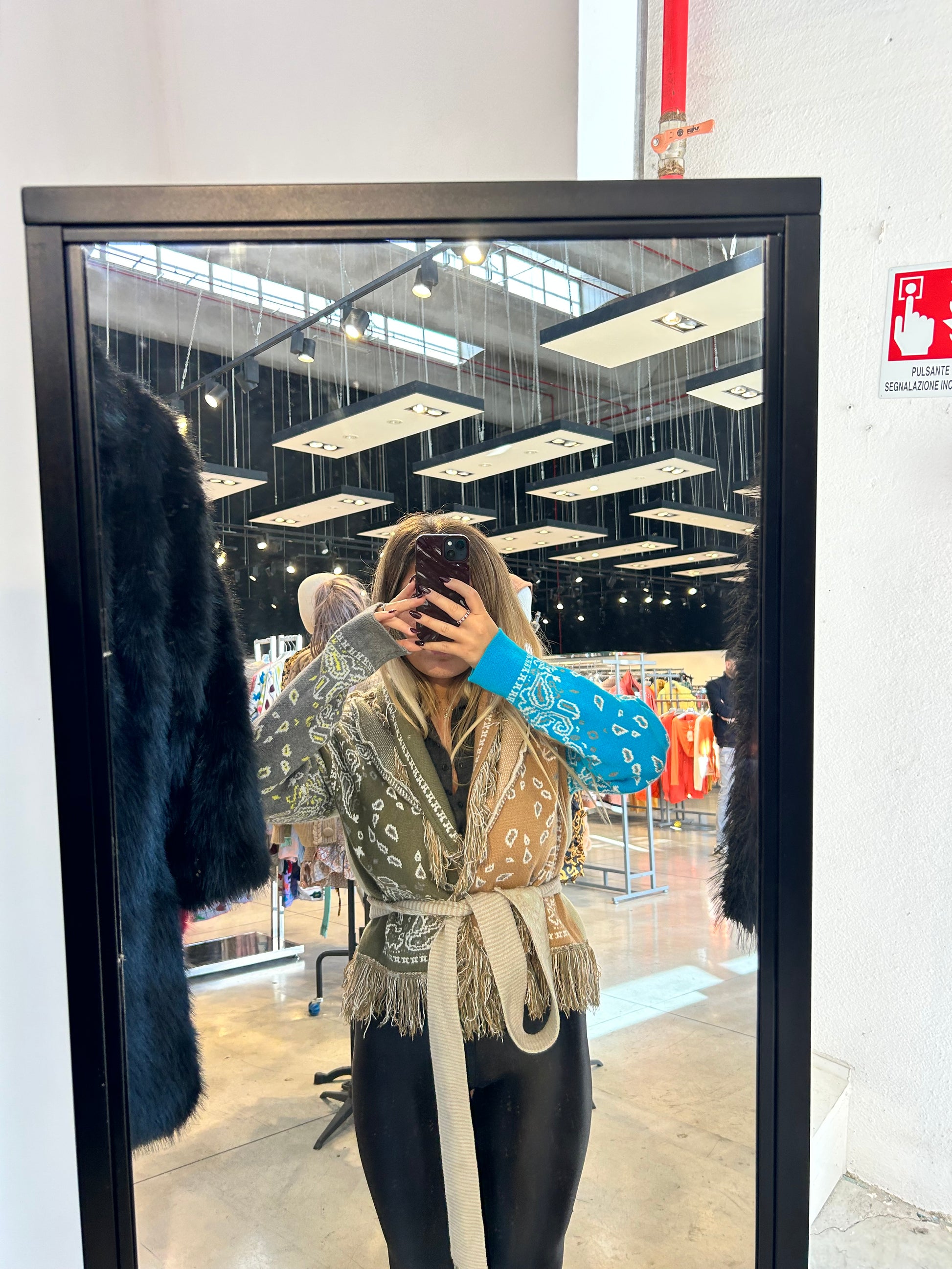 Cardigan multicolor corto con cintura in vita